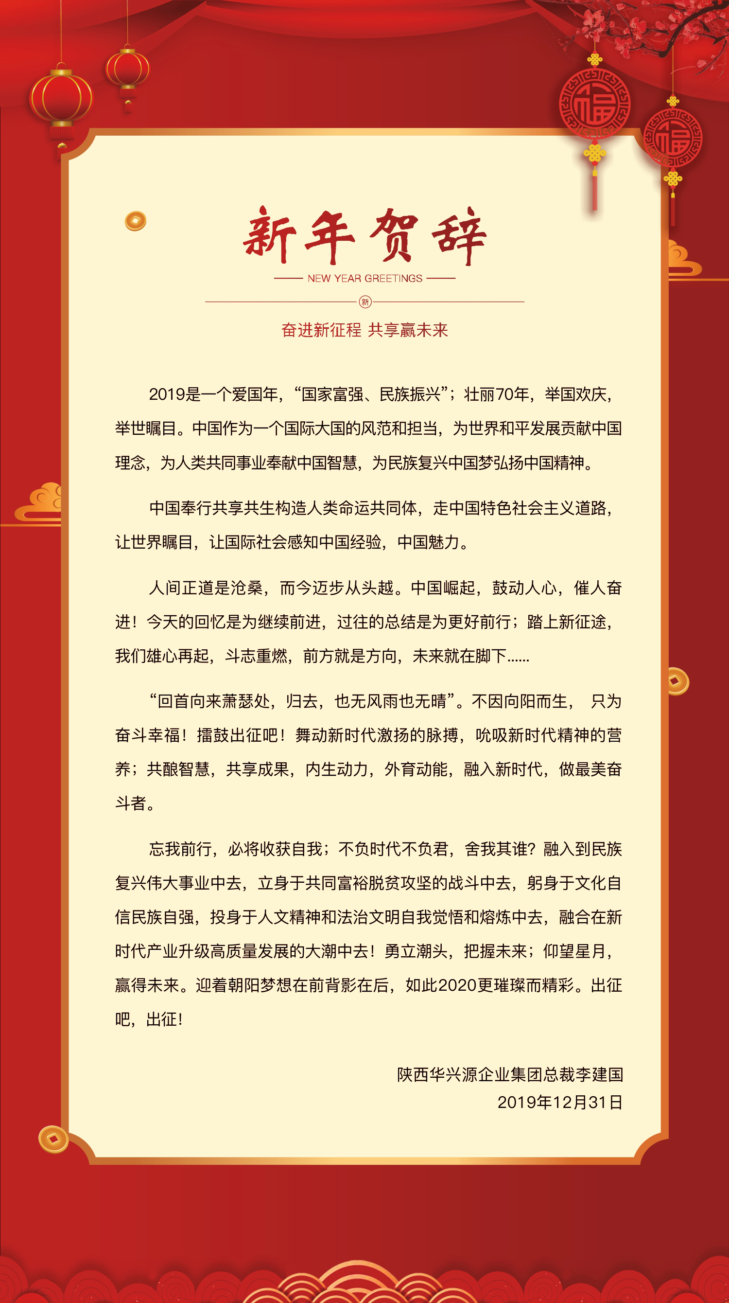 陕西华兴源企业集团成为2019陕西重点推广品牌 陕西华兴源企业集团总裁李建国荣获2019“陕西经济十大功勋人物”称号
